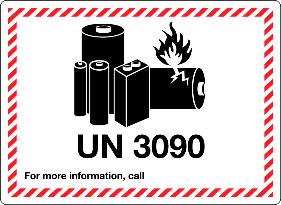Self-Adhesive Personalised UN3090 Lithium Metal Battery Shipping Labels printed red & black on matt white permanent paper. Labels measure 105x74mm & are supplied on rolls of 500. Our Lithium Battery Shipping Labels fully comply with ADR, RID, IMDG & IATA requirements.