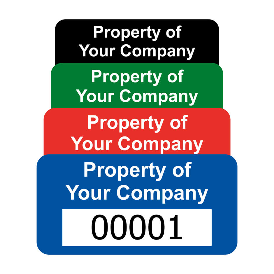 Our Heavy-Duty Self-Adhesive Personalised Asset Labels are printed on a high-quality, non-rip permanent UL Approved Polyester and available in a choice of colours and laminated for additional durability. Suitable for both internal and external use. The Asset Labels can be customised on any or all of the personalisation fields provided. The Asset Labels measure 40x20mm, available in a choice of colours, and suitable for use on most appliances.