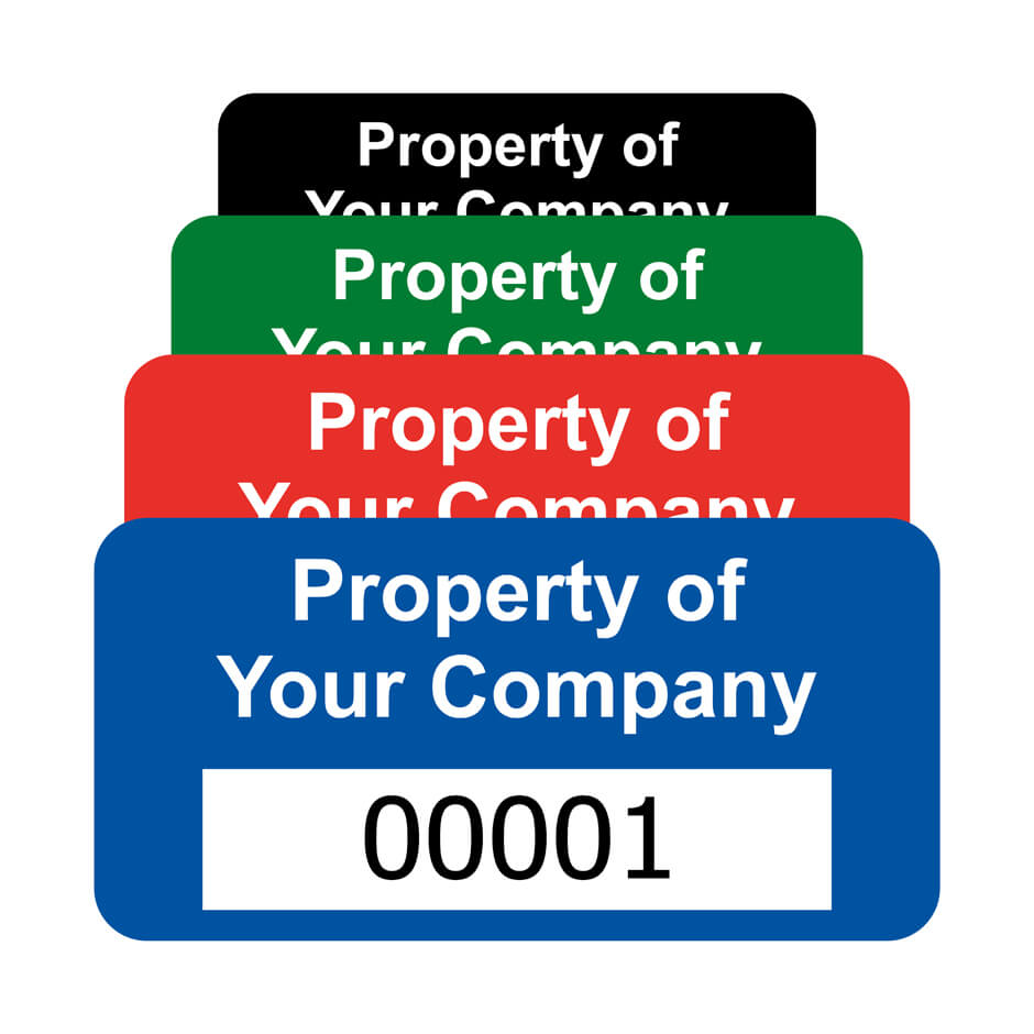 Our Heavy-Duty Self-Adhesive Personalised Asset Labels are printed on a high-quality, non-rip permanent UL Approved Polyester and available in a choice of colours and laminated for additional durability. Suitable for both internal and external use. The Asset Labels can be customised on any or all of the personalisation fields provided. The Asset Labels measure 50x25mm, available in a choice of colours, and suitable for use on most appliances.