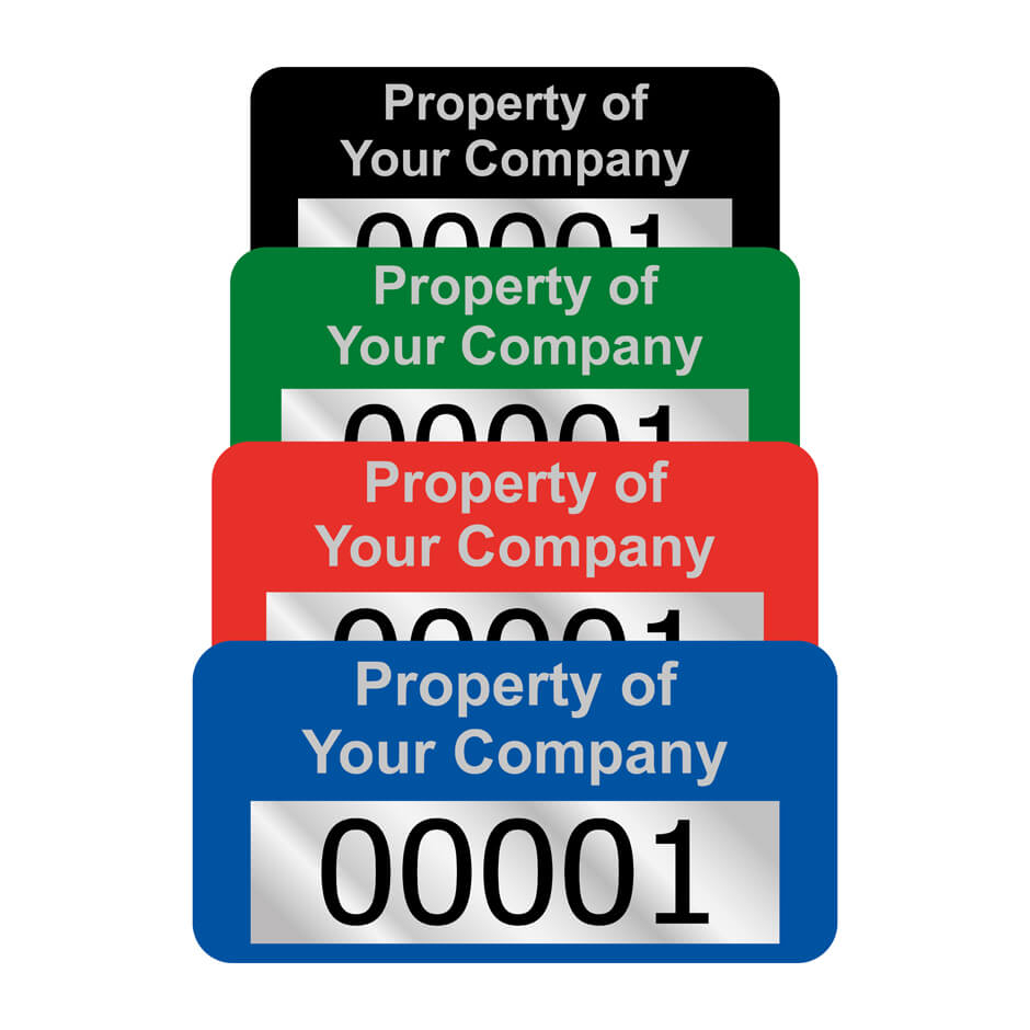 Our Heavy-Duty Self-Adhesive Personalised Asset Labels are printed on a high-quality, non-rip permanent UL Approved Silver Polyester and laminated for additional durability. Suitable for both internal and external use. The Asset Labels can be customised on any or all of the personalisation fields provided. The Asset Labels measure 30x15mm, available in a choice of colours, and suitable for use on most appliances.
