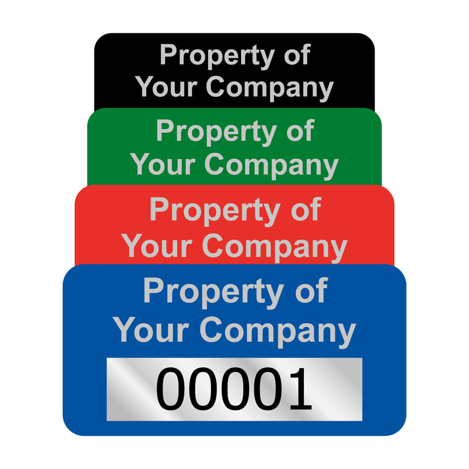 Our Heavy-Duty Self-Adhesive Personalised Asset Labels are printed on a high-quality, non-rip permanent UL Approved Silver Polyester and laminated for additional durability. Suitable for both internal and external use. The Asset Labels can be customised on any or all of the personalisation fields provided. The Asset Labels measure 40x20mm, available in a choice of colours, and suitable for use on most appliances.