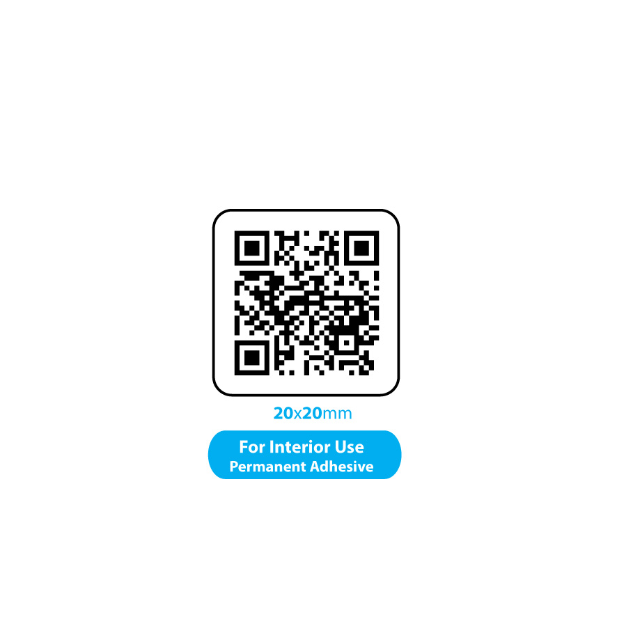 Self-Adhesive QR (Quick Response) 2D Barcode Labels printed black on gloss white permanent vinyl. Labels measure 20x20mm & are supplied in packs of 100. This code will be encrypted with your website / contact / v-card details to be supplied by you at the time of ordering in the personalisation field provided. This Code, when scanned by QR Reader software on Smart Devices, will display your website or specific web page or v-card details. Ideal for affixing to your Products, Goods, and Publicity Material.